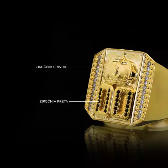 Transforme o seu estilo com o Anel 00 Cravejado - Banhado a Ouro 18K e destaque-se com uma joia que une brilho, resistência e autenticidade!