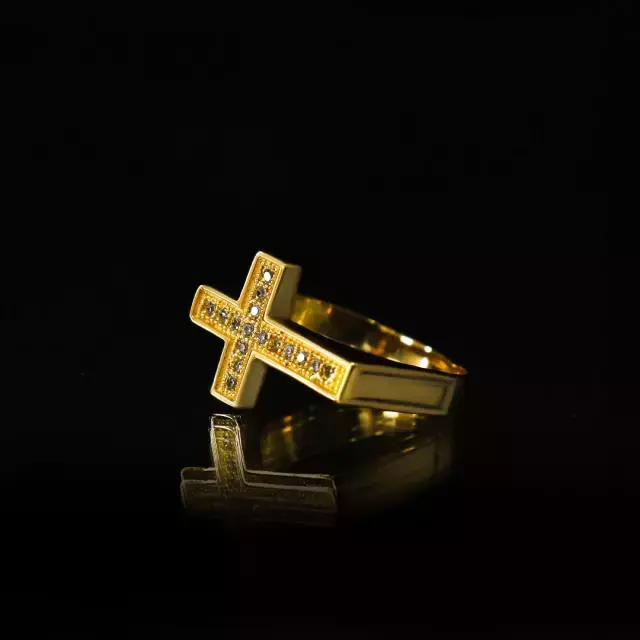 Anel Cruz Deitada Cravejado Banhado a Ouro 18K