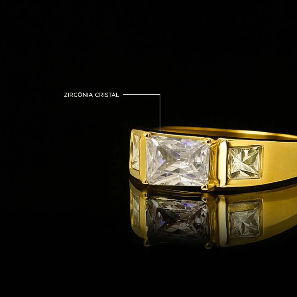 Adquira já o seu Anel Pedra Cristal Cravejado Banhado a Ouro 18K e leve mais brilho para o seu dia a dia!