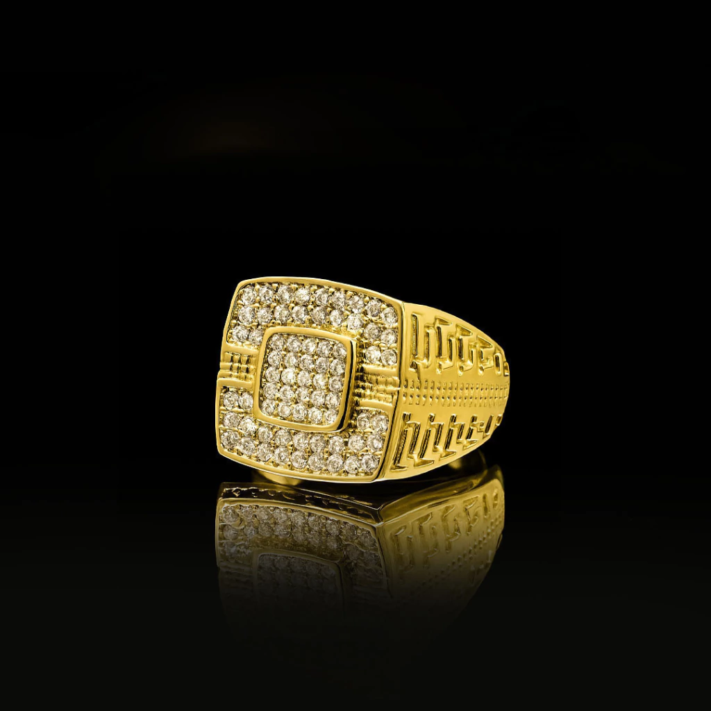 Destaque-se com o Anel Quadrado Exclusivo Cravejado Banhado a Ouro 18K e leve para o seu look uma joia única, sofisticada e com brilho eterno!