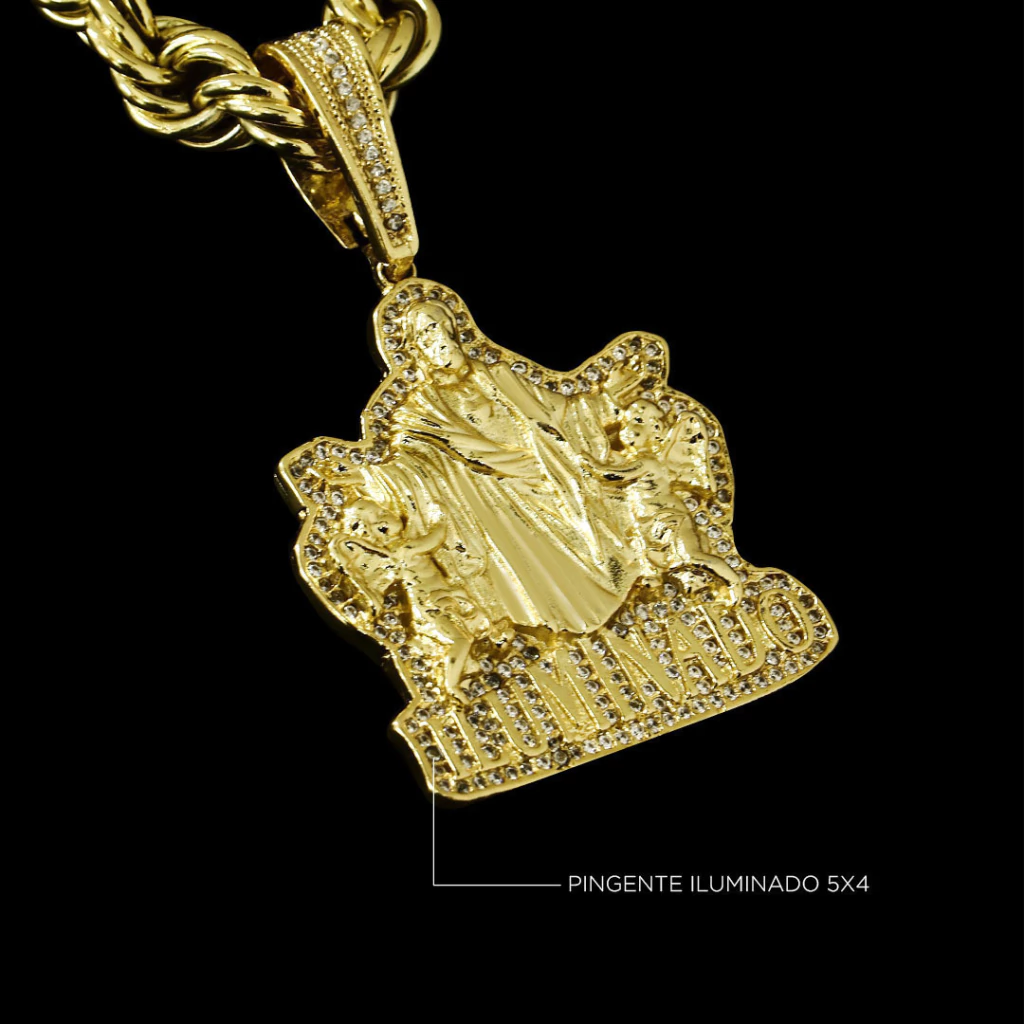 Adquira agora mesmo o Corrente Cordão Baiano (12mm) 70cm + Pulseira Cordão Baiano (10mm) 19cm + Pingente Iluminado 5X4 e eleve seu visual com acessórios de destaque, qualidade premium e garantia!