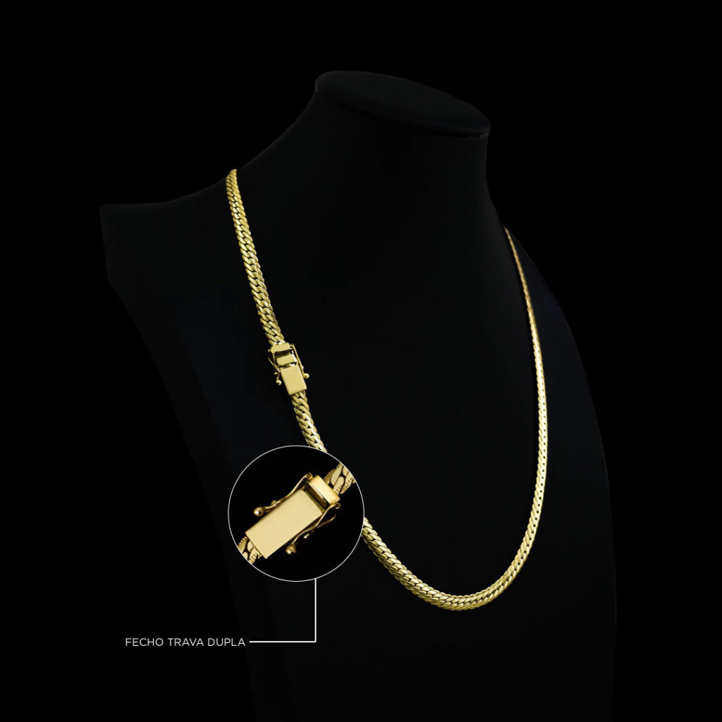 Valorize seu visual e transmita personalidade com a Corrente Grumet Flat Detalhada de 7mm banhada a Ouro 18K – uma joia para quem busca elegância, resistência e exclusividade todos os dias!