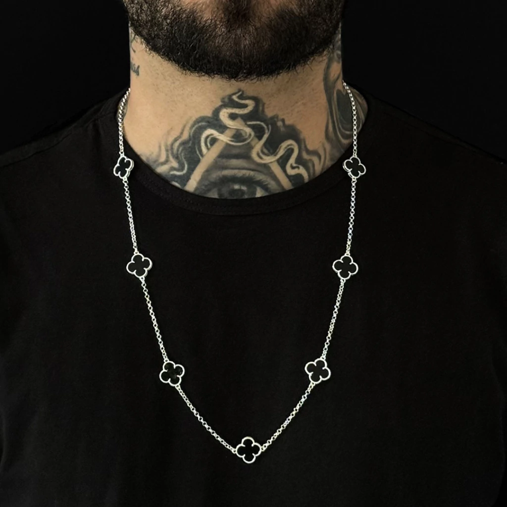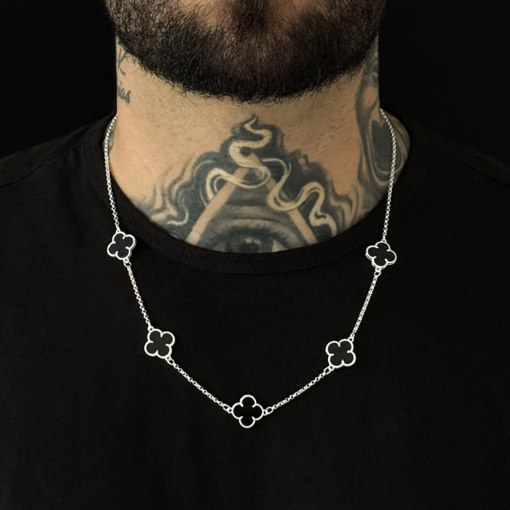 Transforme seu look com a Corrente Trevo Preto banhada a Prata 925 e destaque-se com um acessório único, resistente e cheio de atitude!