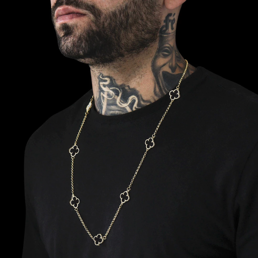 Transforme seu visual com a Corrente Trevo Preto 3 - 70cm Banhada a Ouro 18K e destaque-se com um acessório cheio de significado, brilho e qualidade!