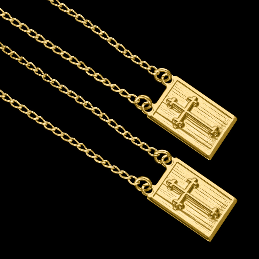 Todos os nossos escapulários possuem 1 ano de garantia por defeito de fabricação, são desenvolvidos com alto padrão de qualidade de acabamento e cor do banho, e passam por um processo de conferência antes de serem enviados.
