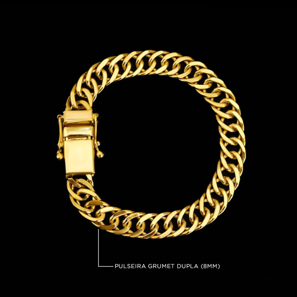 Atualize seu estilo com o Kit Corrente Grumet Dupla (11mm) + Pulseira Grumet Dupla (8mm) e destaque-se com acessórios de brilho, resistência e personalidade!