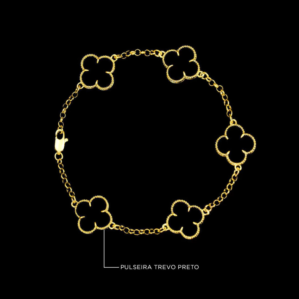 Adquira já o seu Kit Corrente Trevo Preto 2 + Pulseira Trevo Preto e realce sua personalidade com acessórios cheios de atitude, qualidade e design exclusivo!