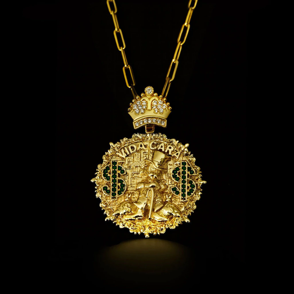 Este pingente é ideal para quem valoriza acessórios marcantes e cheios de personalidade. Seu design elaborado e acabamento cravejado fazem dele uma escolha perfeita para compor visuais modernos e ousados, seja no dia a dia ou em eventos especiais.