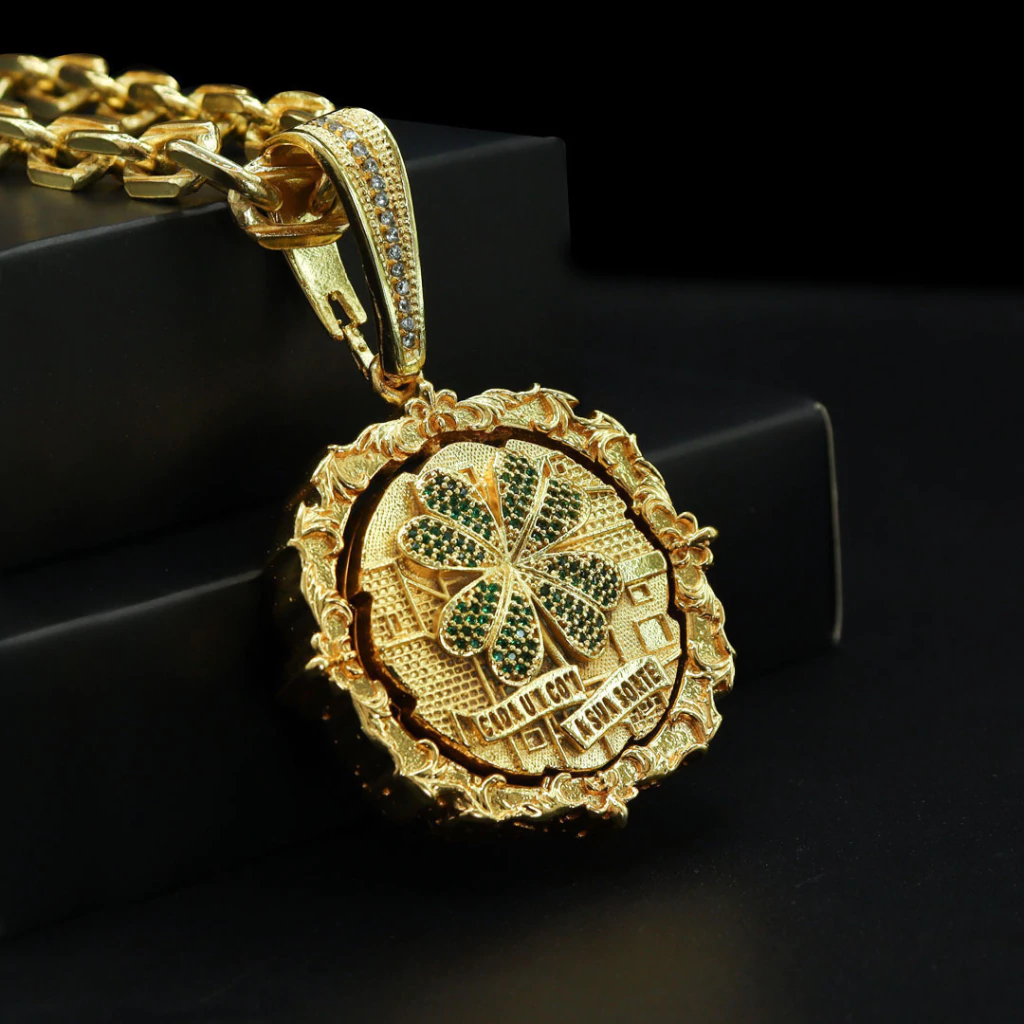 Leve para casa o Pingente Trevo Nossa Senhora Articulado 3x3 banhado a ouro 18k e destaque-se com um acessório que simboliza fé, sorte e elegância.