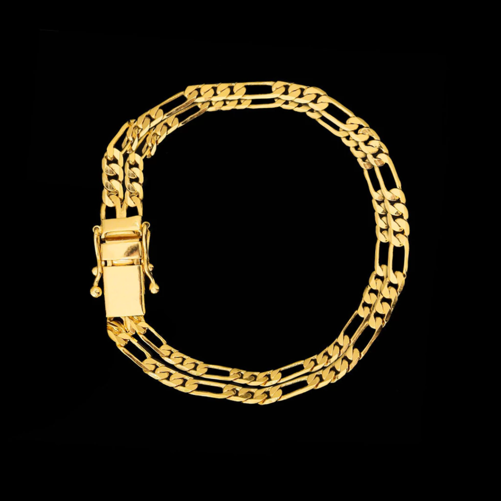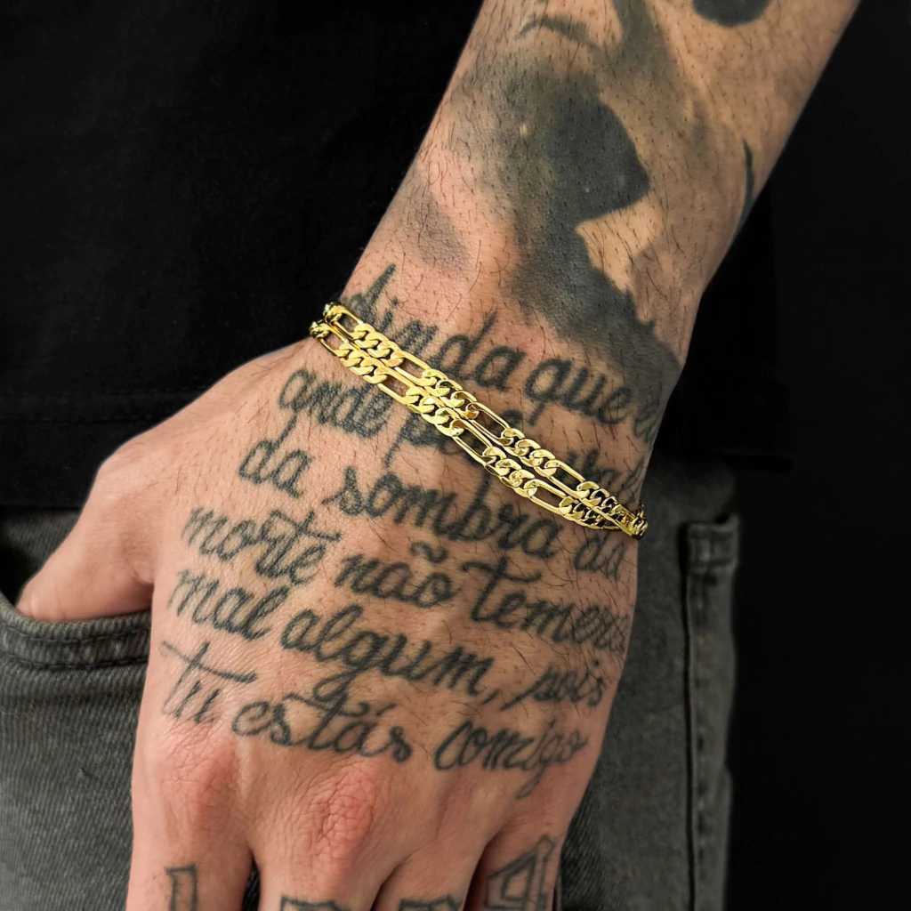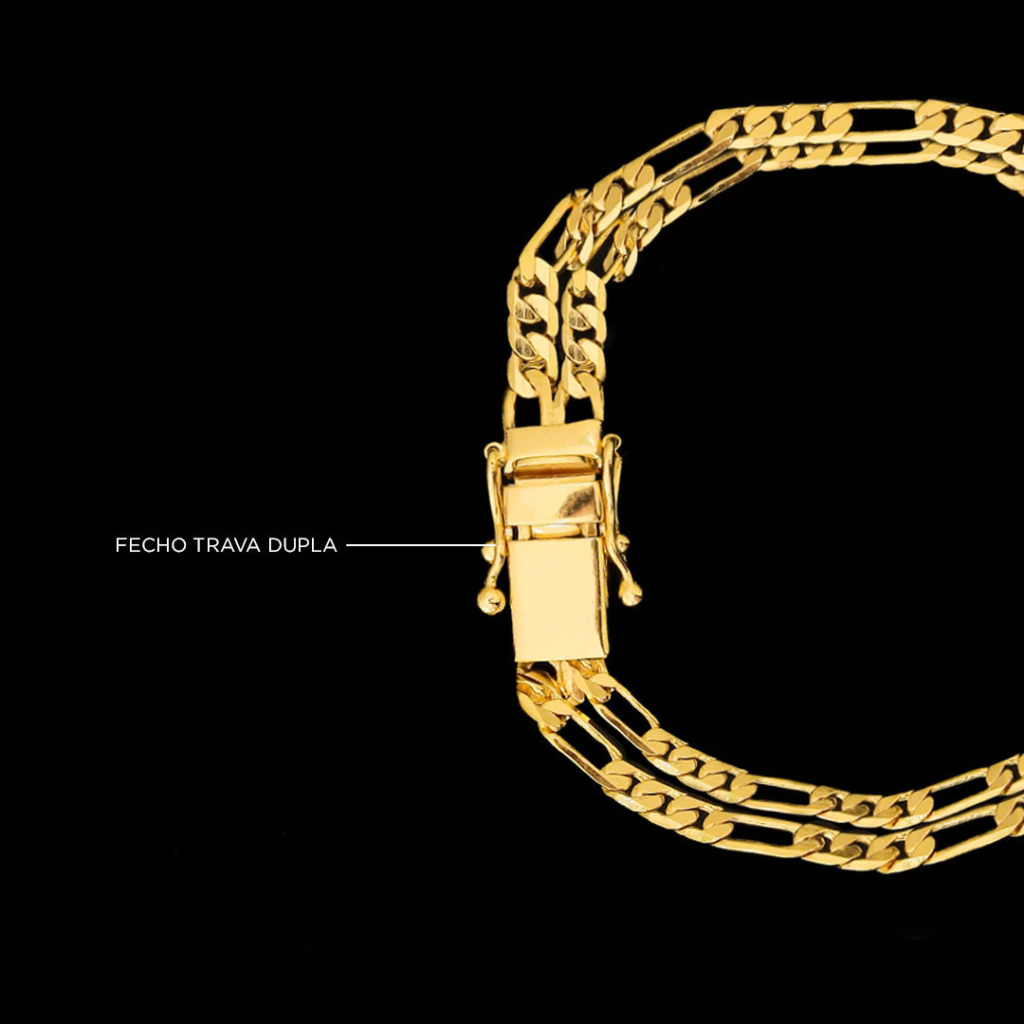Adicione luxo e personalidade ao seu visual com a Pulseira 3 Por 1 Fio Duplo de 8mm, disponível nos tamanhos de 19cm ou 21cm. Esta pulseira, banhada a Ouro 18K, é a escolha perfeita para quem busca um acessório imponente, elegante e de alta qualidade para qualquer ocasião.