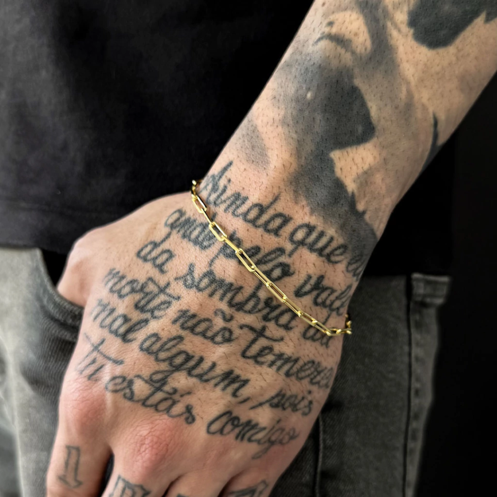 Realce seu estilo com a Pulseira Elo Cadeado Fino de 3mm banhada a Ouro 18K! Uma peça sofisticada, perfeita para quem busca elegância e modernidade no dia a dia ou em ocasiões especiais.