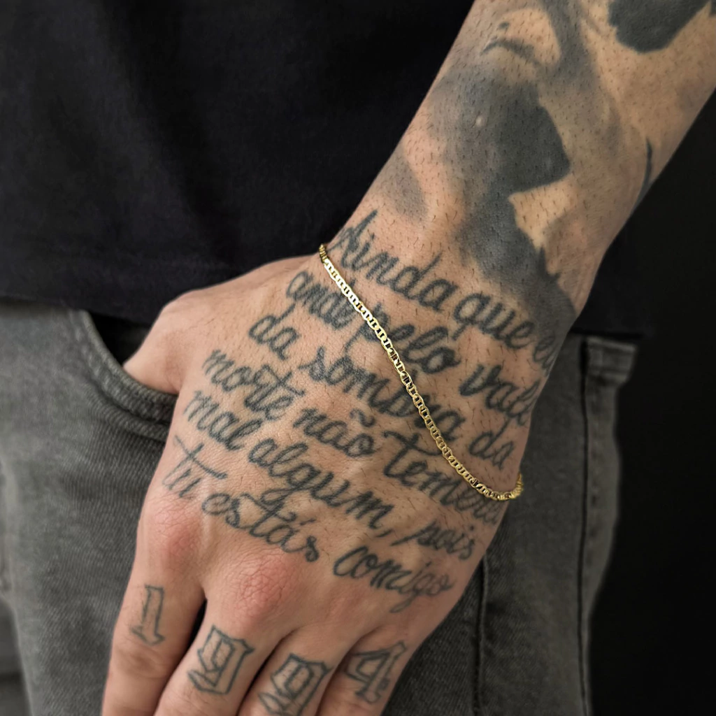 Eleve seu estilo com a Pulseira Piastrini 2mm Banhada a Ouro 18K e destaque-se com um acessório exclusivo, resistente e repleto de brilho!